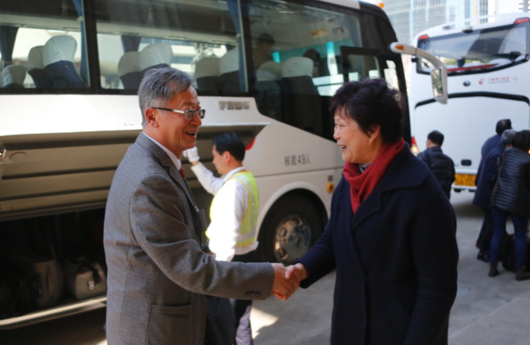 3月15日下午,我校全国人大代表、管理学院严诚忠教授在参加完十二届全国人大五次会议全部议程后,随上海代表团返回上海。校统战部部长王英等前往上海展览中心迎接严诚忠教授,并与严教授亲切交流今年的参会感受。