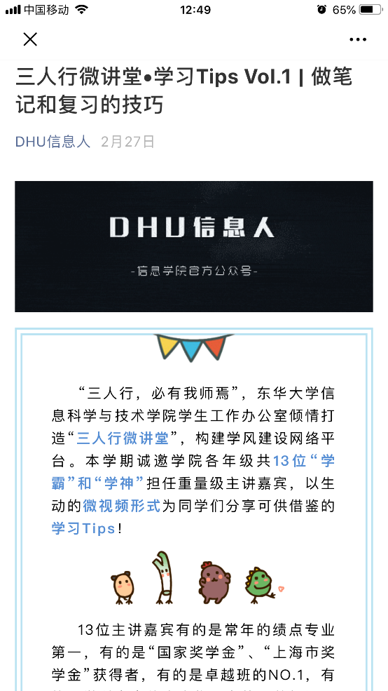 (DHU信息人微信公众号发布十四行情诗和易班网络微课)