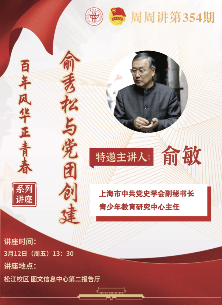 主讲人简介:俞敏,上海中共党史人物研究中心副秘书长,上海市中共党史学会青少年教育研究中心主任,华东师范大学马克思主义学院兼职教授,俞秀松研究中心副主任,渔阳里历史文化研究会副会长。俞秀松烈士继子。