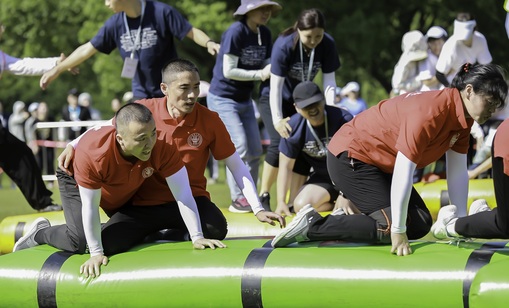 启动仪式后,我校来自教职工健身协会的10位教职工在校工会常务副主席陆湘群的带领下,按照指定路线到达各红色打卡点,体验长征精神,汲取前进力量,顺利完成健步走任务。当天下午,健身嘉年华趣味运动会合力跳长绳、一投定乾坤、同心齐鼓舞、锁定新目标、奋楫同舟进五个项目开赛。我校化学化工与生物工程学院工会、体育部工会、后勤集团工会和教职工篮球协会等组成的近30位教职工代表学校参赛,经过赛前为期两周的紧张训练,最终在比赛中获得一投定乾坤冠军、锁定新目标亚军、奋楫同舟进第五名。